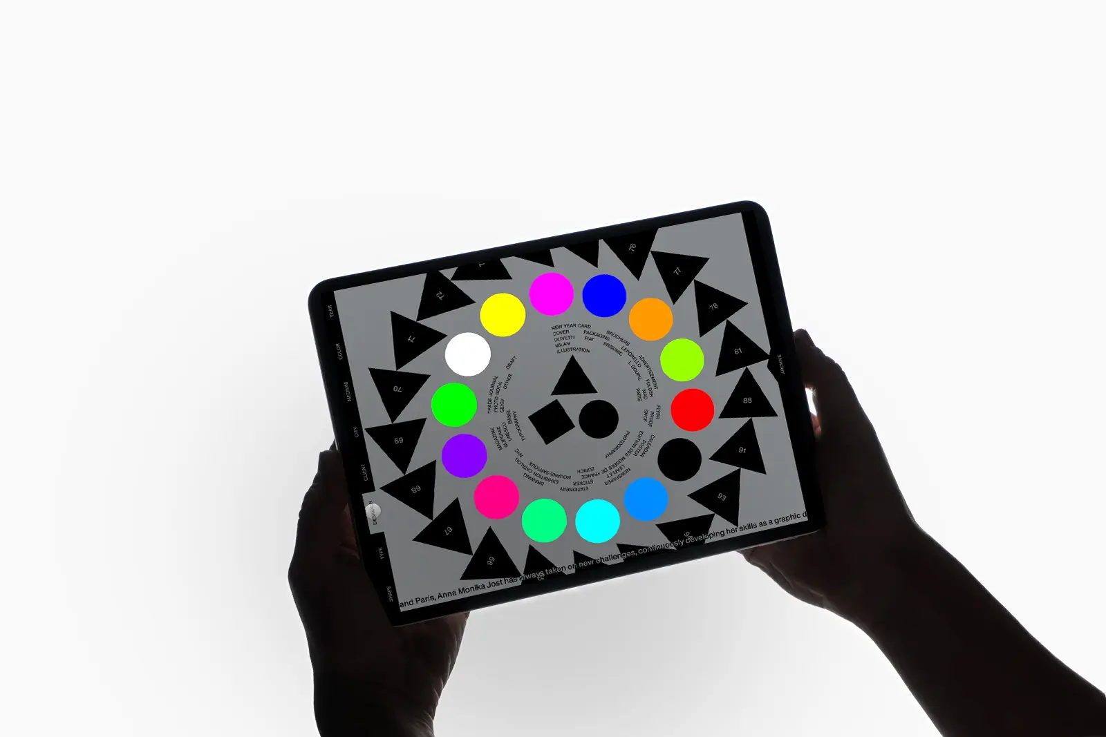 designs in a playful way. The simple geometrical shapes of the interface translate her style